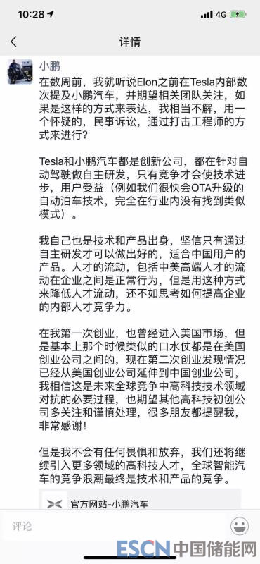 小鵬汽車在一份聲明中表示,該公司“尊重任何第三方的知識產(chǎn)權(quán)和機密信息”。此外,聲明表示,公司從未導致或試圖導致曹光植不當使用特斯拉的商業(yè)機密、機密和專有信息。目前,公司已經(jīng)啟動內(nèi)部調(diào)查程序。