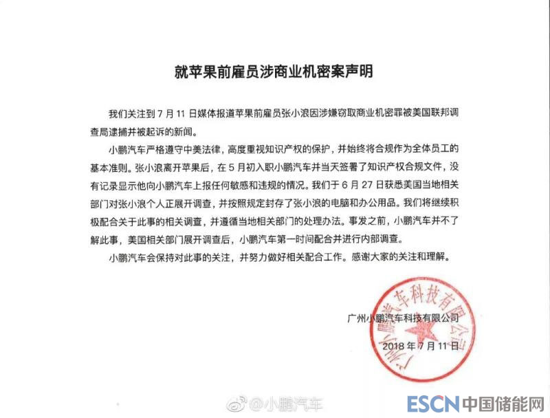 小鵬汽車隨后發(fā)表聲明稱,張在5月初入職時簽署了與知識產(chǎn)權(quán)有關(guān)的合規(guī)文件。這些文件沒有顯示張記錄了任何“敏感或違反信息”。在獲悉聯(lián)邦調(diào)查時,小鵬汽車已經(jīng)封鎖了張的辦公室和工作電腦,并將積極配合調(diào)查人員調(diào)查此案。