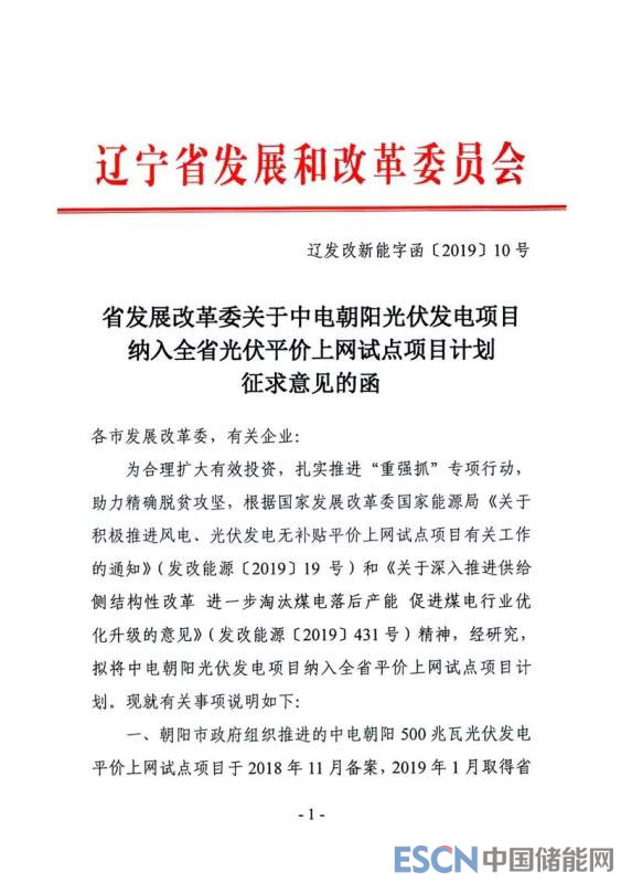 3月22日,遼寧省發(fā)改委印發(fā)《關(guān)于中電朝陽(yáng)光伏發(fā)電項(xiàng)目納入全省光伏平價(jià)上網(wǎng)試點(diǎn)項(xiàng)目計(jì)劃征求意見(jiàn)的函》(以下簡(jiǎn)稱“《意見(jiàn)的函》”),擬將中電朝陽(yáng)光伏發(fā)電項(xiàng)目納入全省平價(jià)上網(wǎng)試點(diǎn)項(xiàng)目計(jì)劃。