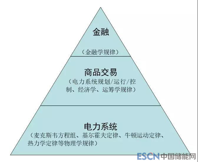 市場(chǎng)元素的加入使得原本就已十分復(fù)雜的電力系統(tǒng)變得更加復(fù)雜,各種關(guān)系交織在一起,難以厘清,常常引起概念上的混淆。但總體來說,電力市場(chǎng)/電力系統(tǒng)的問題仍可分為電力系統(tǒng)物理層、商品交易層和金融交易層3個(gè)層次,各自服從不同的規(guī)律,但又互相關(guān)聯(lián),如圖2所示。在3個(gè)不同層次中,“電能”的內(nèi)涵是完全不同的,需清晰分辨不同層次的概念和規(guī)律。由于電能在物理上的同質(zhì)化特征,電網(wǎng)的作用像水池,因此從物理電能的角度,實(shí)際上是無(wú)法分清產(chǎn)銷方的。因此電力市場(chǎng)中交易的并非物理的電能(屬于物理層),而是發(fā)電權(quán)與用電權(quán)(屬于商品交易層),最終通過調(diào)度計(jì)劃來實(shí)現(xiàn),因此電網(wǎng)調(diào)度也成為整個(gè)電力市場(chǎng)的“交通指揮中心”,電力市場(chǎng)交易則完全基于所采用的調(diào)度、控制模型。