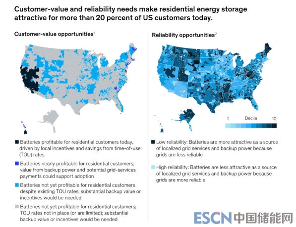 電網(wǎng)上的住宅儲(chǔ)能資源越多,電網(wǎng)整合就越有價(jià)值。因此,美國(guó)幾個(gè)州正在試驗(yàn)實(shí)施住宅儲(chǔ)能的電網(wǎng)整合計(jì)劃。馬薩諸塞州和紐約州正在制定“清潔峰值”政策,以促進(jìn)住宅儲(chǔ)能系統(tǒng)的部署,以滿(mǎn)足峰值需求。從2020年開(kāi)始,根據(jù)該州建筑節(jié)能標(biāo)準(zhǔn)第24條,加利福尼亞州將要求在該州新建住宅安裝太陽(yáng)能發(fā)電系統(tǒng),并鼓勵(lì)建筑商部署電池儲(chǔ)能系統(tǒng)。