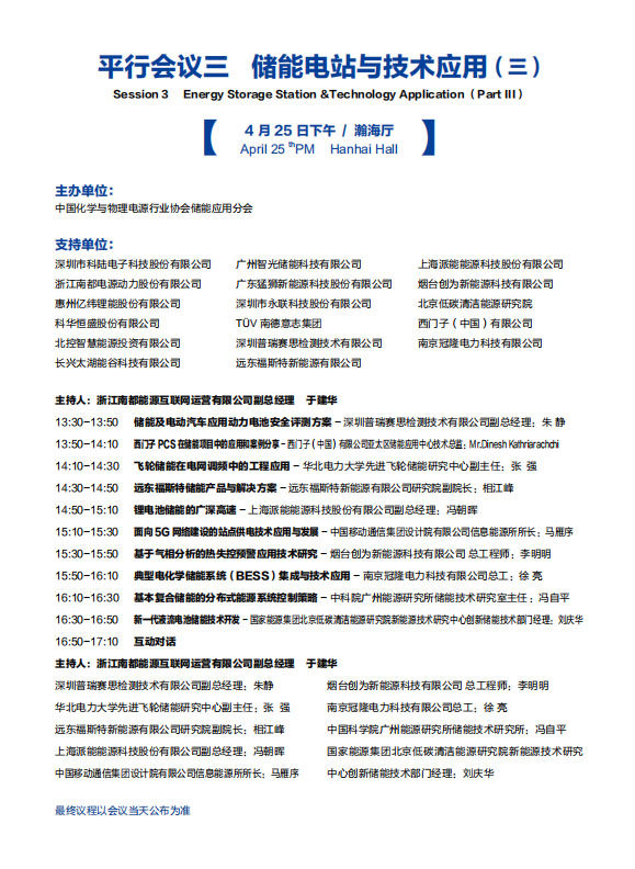 以下是《儲能電站與技術(shù)應(yīng)用專場三》議程內(nèi)容,其他各專場議程組委會將相繼發(fā)布,敬請關(guān)注!