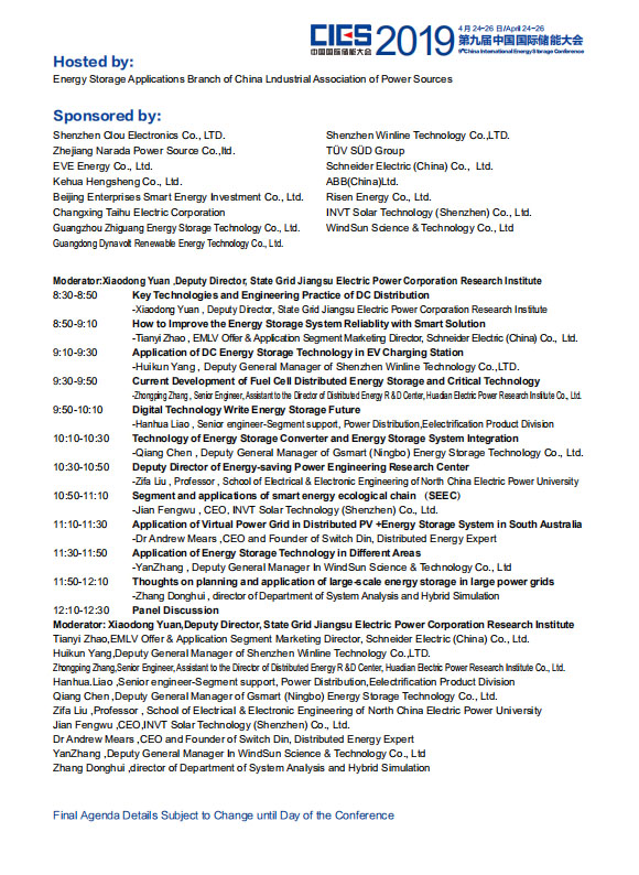 以下是《微電網(wǎng)與儲能專場》議程內(nèi)容,其他各專場議程組委會將相繼發(fā)布,敬請關注!