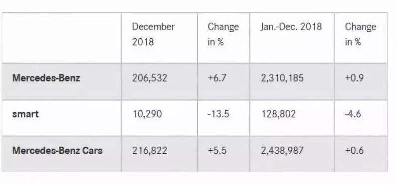 2018年,奔馳汽車全年銷量為244萬輛,同比增長了0.6%;而smart品牌的銷量卻僅僅為12.9萬輛,同比下滑了4.6%。