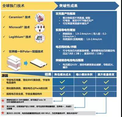 技術優(yōu)勢上,面對薄膜、固態(tài)高分子、氧化物、硫化物幾個技術主流,輝能選擇的是氧化物體系,并憑借鋰陶瓷電池這一技術解決了固態(tài)電池安全和性能的核心問題。輝能科技發(fā)布的能將新能源車電池包體積減半、重量減少三成、成本降低三成3D封裝技術,也是一大亮點。