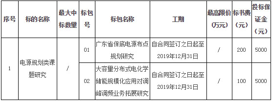 廣東省保底電源布點(diǎn)規(guī)劃、大容量分布式電化學(xué)儲(chǔ)能規(guī)?;瘧?yīng)用對(duì)調(diào)峰調(diào)頻業(yè)務(wù)拓展研究項(xiàng)目招標(biāo)公告