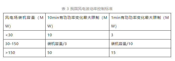 以風(fēng)電的波動(dòng)率為例,根據(jù)2005年發(fā)布的《風(fēng)電場接入電力系統(tǒng)技術(shù)規(guī)定》,我國風(fēng)電場的波動(dòng)率的控制標(biāo)準(zhǔn)如下: