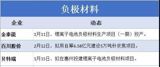 圖為2019年首季度國內主要材料企業(yè)在負極材料方向的市場動態(tài)