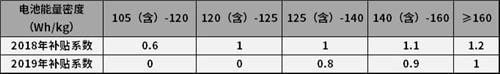 2. 能量密度補(bǔ)貼起點(diǎn)提高,上限要求不變,補(bǔ)貼系數(shù)下調(diào)