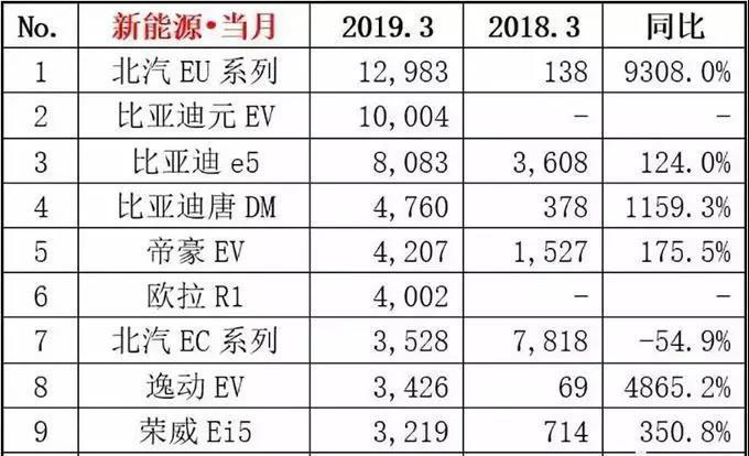 18年12月的幾個(gè)主力細(xì)分市場(chǎng)都表現(xiàn)很強(qiáng),加之延續(xù)期補(bǔ)貼的效果進(jìn)一步提前釋放,2月政策不明朗,因此3月的各細(xì)分市場(chǎng)表現(xiàn)的環(huán)比增長(zhǎng)較大,亮點(diǎn)相對(duì)突出。