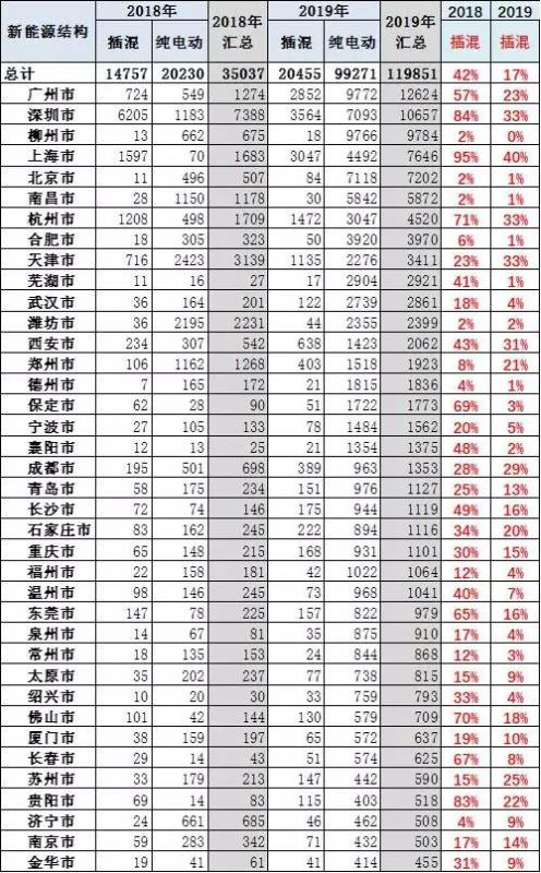 1.19年的新能源車的純電動(dòng)占80%