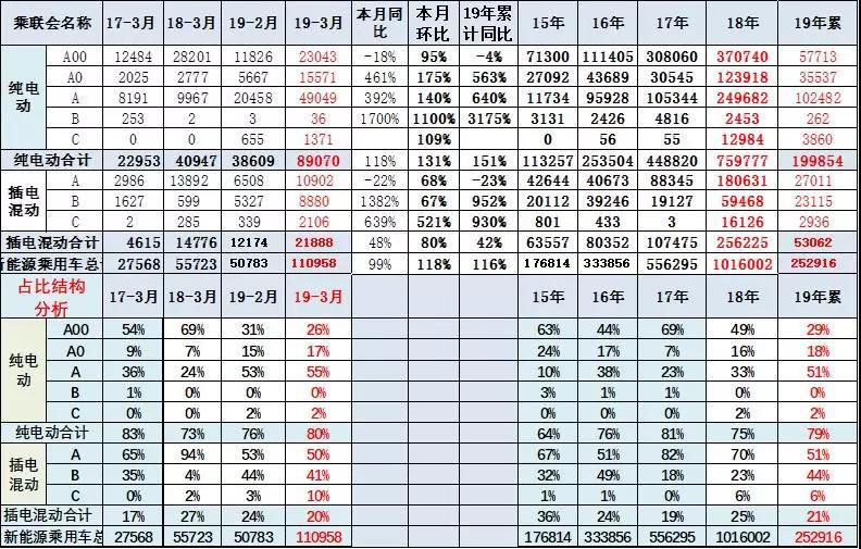 3月純電動(dòng)中的A00級(jí)電動(dòng)車有2.3萬(wàn)臺(tái),同比增-18%,占純電動(dòng)乘用車26%份額,較18年3月下降43個(gè)百分點(diǎn);今年3月的A級(jí)是表現(xiàn)很好的大的市場(chǎng)。A級(jí)電動(dòng)車主要是私家和出租租賃的拉動(dòng),因此去年的銷量仍較低,今年的3月的A級(jí)電動(dòng)車同比增392%,環(huán)比2月增640%,體現(xiàn)較好增長(zhǎng)態(tài)勢(shì)。而A0級(jí)電動(dòng)車同樣出現(xiàn)同比暴增,環(huán)比表現(xiàn)也很強(qiáng)。