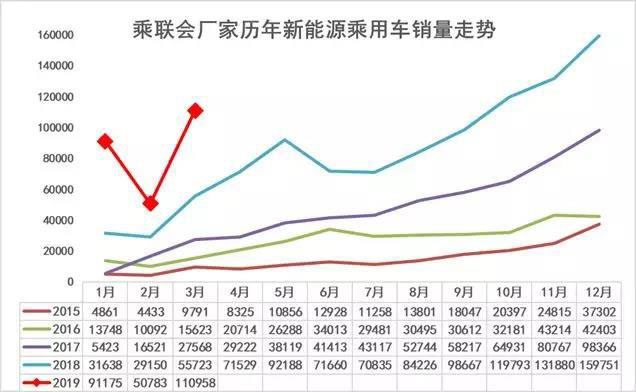 18年1-12月新能源乘用車銷售101萬(wàn)臺(tái),同比增長(zhǎng)83%。19年3月新能源表現(xiàn)仍強(qiáng),同比增速100%,超強(qiáng)于18年全年增速。