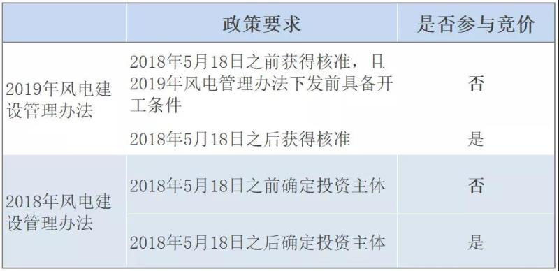 而根據(jù)新政,只有在2018年5月18日之前獲得核準并于2019年4月11日(征求意見稿發(fā)布時間)前具備開工條件的項目才可以豁免參與競價配置資源。這一規(guī)定與47號文提出的“在2018年5月18日之前確定投資主體的海上風電項目可以執(zhí)行原資源配置方案”的規(guī)定沖突。在風電開發(fā)流程中,確定投資主體與獲得核準并不是同一個時間節(jié)點,列入開發(fā)建設方案與具備開工條件也非同一時間節(jié)點,建議進一步明確海上風電豁免參與競價配置資源的時間點,以減少對投資企業(yè)開發(fā)節(jié)奏的影響。