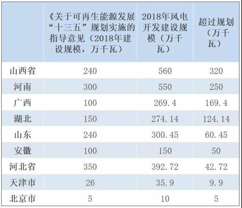2018年底前已并網(wǎng)和已核準建設的風電項目(扣除應廢止或其他原因不具備建設條件的項目),總規(guī)模已超過本省級區(qū)域2020年規(guī)劃并網(wǎng)目標的,除平價上網(wǎng)風電項目外,暫停新增陸上集中式風電項目建設。