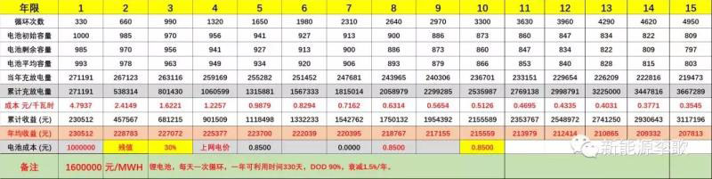 f.結論:當循環(huán)次數(shù)大于3200次時,度電成本才低于0.5476元。