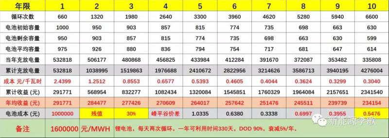a.1MWH儲能系統(tǒng),峰谷價差第一年收益為29.18萬元/年;