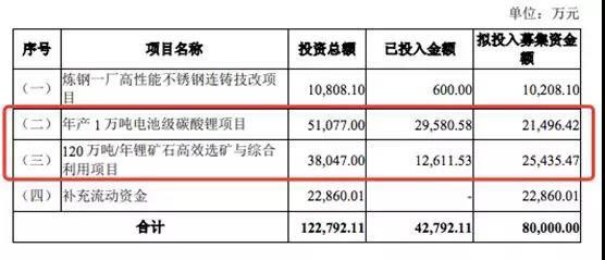 4月16日,永興特鋼(002756)公告顯示,公司擬發(fā)行不超過8億元可轉(zhuǎn)換公司債券,用于不銹鋼連鑄技改以及鋰電新能源業(yè)務(wù),其中,約4.7億元將投入電池級(jí)碳酸鋰項(xiàng)目以及鋰礦石選礦項(xiàng)目。