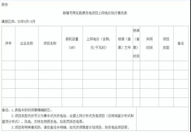 附件:新增可再生能源發(fā)電項(xiàng)目上網(wǎng)電價執(zhí)行情況表