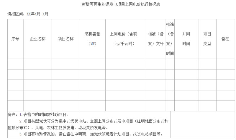 附件:新增可再生能源發(fā)電項目上網電價執(zhí)行情況表