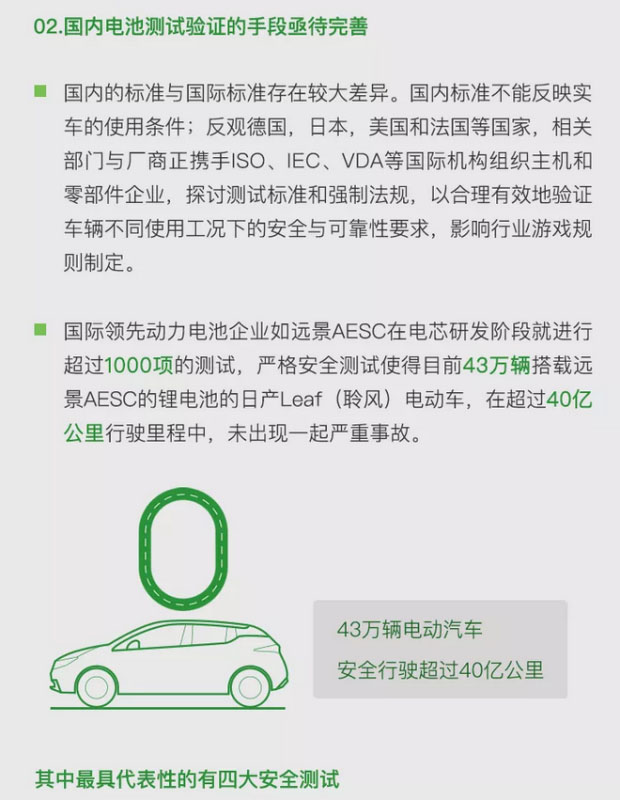 新能源汽車(chē)的安全是行業(yè)發(fā)展的“阿喀琉斯之踵”,尤其是動(dòng)力電池安全。近幾年的新能源汽車(chē)事故,大多與電池品質(zhì)有關(guān)。一方面,行業(yè)標(biāo)準(zhǔn)及國(guó)家強(qiáng)制標(biāo)準(zhǔn)體系的完善將有助于解決這個(gè)問(wèn)題,另一方面,電池全生命周期的非線性拐點(diǎn)的預(yù)測(cè)等大數(shù)據(jù)主動(dòng)安全管理技術(shù)的提升,將對(duì)電動(dòng)汽車(chē)的本質(zhì)安全產(chǎn)生積極影響。