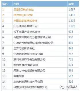 2.3 鋰離子電池全球?qū)@暾?qǐng)人排名