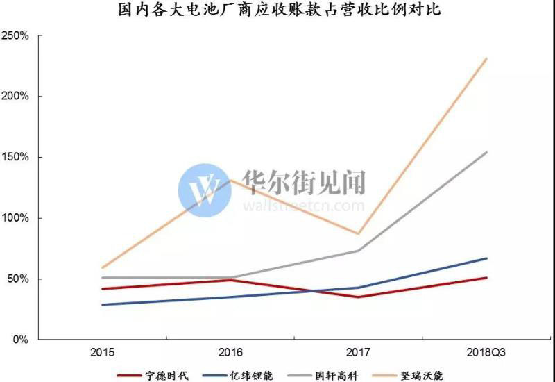 與國(guó)內(nèi)有代表性的三家高端玩家對(duì)比,補(bǔ)貼退坡對(duì)國(guó)內(nèi)電池廠商的毛利率影響顯而易見(jiàn),但寧德時(shí)代在應(yīng)收賬款占營(yíng)收比例一項(xiàng)顯示出了更為優(yōu)秀的議價(jià)能力。