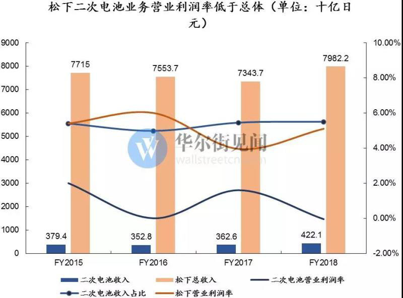 但從產(chǎn)出角度看,能源業(yè)務(wù)旗下二次電池業(yè)務(wù)的KPI完成情況并不理想:在重金投入迅速轉(zhuǎn)化為產(chǎn)能擴(kuò)張的同時(shí),二次電池業(yè)務(wù)收入占比毫無(wú)起色,營(yíng)業(yè)利潤(rùn)率也明顯在拖松下后腿。站在松下角度來(lái)看,在經(jīng)歷了4年的停滯不前之后,很難不對(duì)“4年翻倍”的小目標(biāo)產(chǎn)生懷疑。