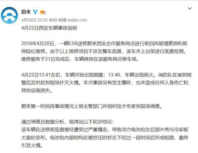 此前,針對4月22日西安發(fā)生的蔚來汽車ES8自燃事件,蔚來汽車給出了調(diào)查結(jié)論:該車輛在送修前底盤曾經(jīng)遭受過嚴重撞擊,導(dǎo)致動力電池包左后部外殼與冷卻板大面積變形。電池包內(nèi)部結(jié)構(gòu)在被擠壓的狀態(tài)下經(jīng)過一段時間后形成短路,最終引發(fā)火情。