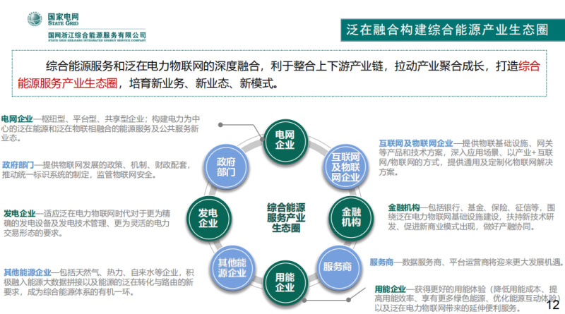 我這次報(bào)告的主要是針對(duì)園區(qū),希望尋找能夠在整個(gè)工業(yè)園區(qū)里面,尋找挖掘綜合能源服務(wù)的價(jià)值。在進(jìn)入園區(qū)泛在物聯(lián)這個(gè)主題之前,我先拋出兩個(gè)概念。第一個(gè)概念,我認(rèn)為綜合能源服務(wù),真正的主要服務(wù)對(duì)象就是大型的工業(yè)園區(qū);第二個(gè)概念,我們的泛在電力物聯(lián)網(wǎng)建設(shè)能夠?yàn)榫C合能源服務(wù)提供一個(gè)有效的支撐。這是最前面拋出的概念,這兩個(gè)概念報(bào)告中會(huì)詳細(xì)地解析。首先,是泛在物聯(lián)與綜合能源服務(wù)需要融合,綜合能源服務(wù)和泛在電力物聯(lián)網(wǎng)的融合,是發(fā)展業(yè)務(wù)和數(shù)據(jù)的融合貫通的物理載體。同時(shí)綜合能源服務(wù)具備非常豐富的電力物聯(lián)網(wǎng)的應(yīng)用場(chǎng)景,綜合能源服務(wù)和泛在電力物聯(lián)網(wǎng)的融合就是業(yè)務(wù)和數(shù)據(jù)相輔相成聯(lián)合貫通以后形成能源流、業(yè)務(wù)流、數(shù)據(jù)流的“三流合一”。這個(gè)圖其實(shí)也和上午的專家做的圖差不多,整個(gè)泛在的電力物聯(lián)網(wǎng),包括感知層、業(yè)務(wù)層、能源層,形成了能源流、業(yè)務(wù)流和數(shù)據(jù)流。就形成了三型兩網(wǎng)的互聯(lián)網(wǎng)企業(yè)。最終有一個(gè)服務(wù)目標(biāo),就包含內(nèi)部用戶、供應(yīng)商、能源客戶、政府機(jī)構(gòu)等等,形成一個(gè)完整的能源生態(tài)。