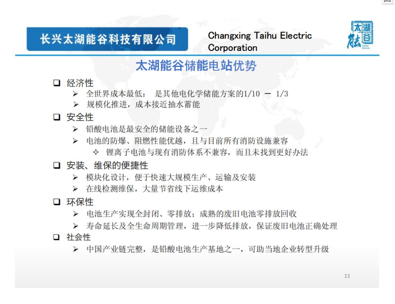 最好的是水庫儲(chǔ)能,但不是到處可用,電化學(xué)儲(chǔ)能有它的優(yōu)勢(shì)?,F(xiàn)在大家走的比較快,鉛酸和鋰電池繼續(xù)在做。比較了鉛酸電池和鋰電池的特點(diǎn)以后,覺得目前選鉛酸電池是一個(gè)很好的技術(shù)路徑。主要是兩個(gè)部分,一個(gè)部分在它的安全性,鉛酸電池安全消防是比較好的,還有可回收性,現(xiàn)在鉛酸電池已經(jīng)做到了99.8%,鋰電池還需繼續(xù)努力。鉛酸電池固然有一個(gè)缺點(diǎn),就是壽命短些,鉛酸電池的壽命短也不完全是電池的緣故,跟我們的使用環(huán)節(jié)非常有關(guān)系,所以我們作為第一個(gè)應(yīng)用,太湖能谷集中精力攻中國的AGM鉛酸電池,即電動(dòng)自行車上用的電池,延長(zhǎng)這種電池壽命以后發(fā)現(xiàn)儲(chǔ)能性價(jià)比得到了很大的改善。