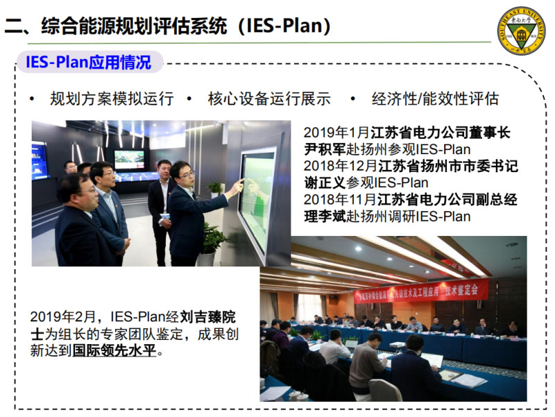 這是一些綜合能源的業(yè)務(wù)模式類的東西,不再多講。下面重點地講一下,我們團(tuán)隊在綜合能源這一塊的工作,我們認(rèn)為能夠更好地服務(wù)于市場驅(qū)動的,而不是哪一個公司或者哪一個領(lǐng)導(dǎo)意志驅(qū)動的,我們所需要的一些軟件或者技術(shù)。包括綜合能源系統(tǒng)的規(guī)劃。這個平臺我們已經(jīng)在一個網(wǎng)站上面發(fā)布出來,免費開放給大家去用。因為最近這一年多以來,經(jīng)常會有企業(yè)過來找我們了解,我們這邊有沒有改造的空間。這邊想開展一些綜合能源服務(wù),采用什么樣的業(yè)務(wù)模式比較好。我們應(yīng)該投資一些什么樣的設(shè)備。我們?nèi)ジ麄兘鉀Q這些問題,其實也蠻花時間的。我想,我們開發(fā)這樣一個工具軟件,這也是比較智能化比較傻瓜的。有一點專業(yè)知識的話,就可以去做這個事情。另外有了規(guī)劃之后可能還需要一些設(shè)計,我們也輔助地做一些綜合能源規(guī)劃的設(shè)計。還有很多公司在做綜合能源的實驗室,包括綜合能源系統(tǒng)建成以后,我想更加好地分析系統(tǒng)的動態(tài)過程或者性能評估這樣一些方面。我們也做了一個綜合能源的仿真系統(tǒng)包括實時仿真系統(tǒng)規(guī)劃這個事情我們一直認(rèn)為是開展綜合能源業(yè)務(wù)的第一步要去做的事情或者最有利的工具。國網(wǎng)公司在提三型兩網(wǎng),前面幾個專家特別好地介紹了泛在電力物聯(lián)網(wǎng)的概念。我也翻看了這一塊的文件。關(guān)于重要的能力支撐,有綜合能源規(guī)劃平臺的建設(shè)。我們開發(fā)了一個IES-Plan一站式的規(guī)劃平臺。它的功能有很多,包括規(guī)劃場景的智能聚類、多能設(shè)備的模型構(gòu)建、用戶自定義設(shè)備等等。這是我們綜合能源系統(tǒng)規(guī)劃平臺的基本評估體系。因為牽扯的技術(shù)比較多,我簡單地講一下,我們是從負(fù)荷和系統(tǒng)資源稟賦開始,輸入各類的價格或者系統(tǒng)的參數(shù),借助我們的能量平衡和運行模擬的分析,最后通過經(jīng)濟(jì)性、可靠性、安全性來進(jìn)行分析和評估,再進(jìn)行規(guī)劃方案的優(yōu)選。