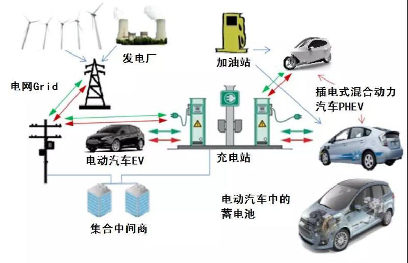 在智能電網(wǎng)情景中,電動車和電網(wǎng)的融合程度是最高的。這個階段最醒目的變化是能量在電動車和電網(wǎng)之間雙向流動。雙向流動使得電動車能夠把蓄電池中的電注入到電網(wǎng)中,這被稱作“Vehicle-to-Grid(V2G)”。電動車向電網(wǎng)提供服務(wù)成為了可能,一個競爭性的市場也就形成了。這種深度融合提高了電網(wǎng)的彈性,甚至能讓電力系統(tǒng)更好地消納可再生能源而不需要額外的電力系統(tǒng)和電網(wǎng)建設(shè)。