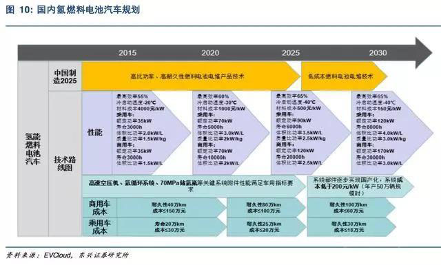根據(jù)此前國家發(fā)布的燃料電池技術(shù)路線圖,燃料電池產(chǎn)業(yè)要發(fā)展以城市私人用車、公共服務(wù)用車的批量應(yīng)用為主,逐步實現(xiàn)燃料電池汽車產(chǎn)業(yè)的商業(yè)化推廣。根據(jù)規(guī)劃,氫燃料電池汽車要在2020年實現(xiàn)5000輛規(guī)模示范應(yīng)用,2025年達到5萬輛的規(guī)劃,2030年實現(xiàn)百萬輛規(guī)模的商業(yè)推廣。