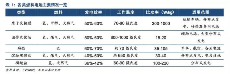 燃料電池是燃料中的化學能通過電化學反應(yīng)直接轉(zhuǎn)化為電能的裝置,單體電池主要有正負兩個電極(燃料電極、氧化劑電極)以及電解質(zhì)組成。理論上燃料電池的能量轉(zhuǎn)化效率可達90%,實際應(yīng)用中一般可以達到40%-70%,具備環(huán)境友好、能量轉(zhuǎn)換效率高,燃料來源多樣,低噪音等特點。