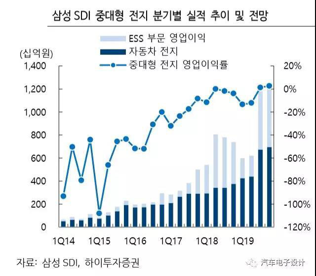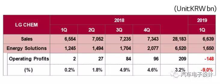 LG化學(xué)和三星SDI兩家公司分別在第一季度做了處理,大電池方面的業(yè)務(wù)的盈利情況采取了處置:LG采取了1200億韓元的處理,包括一次性的800億韓元ESS火災(zāi)的處置費用,所以如下圖所示,這個季度的運營情況收到了影響。