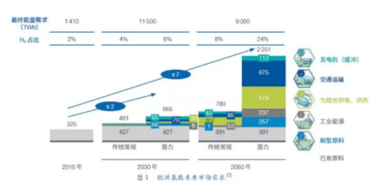 為了實(shí)現(xiàn)歐洲二氧化碳減排目標(biāo),必須發(fā)展氫能。對于諸如天然氣網(wǎng)、運(yùn)輸(特別是重型車輛)關(guān)鍵部分的規(guī)模脫碳、高級燃料和化學(xué)原料需要大量使用氫氣。