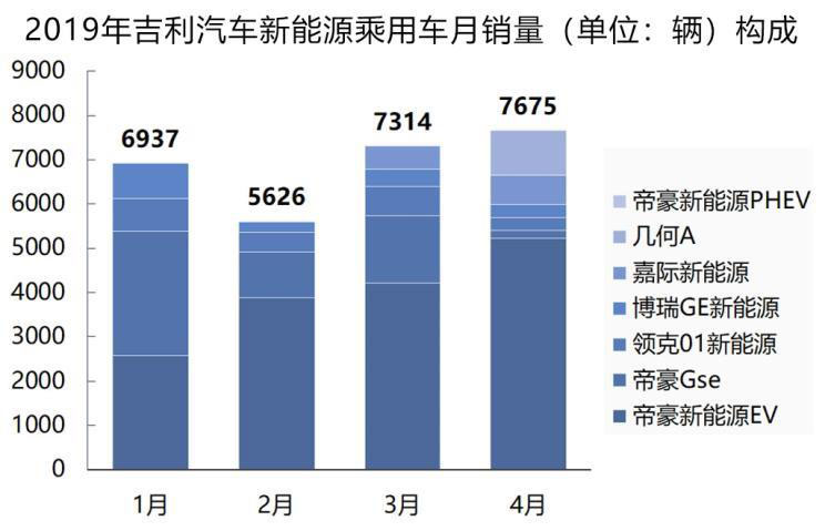今年前4個月,吉利汽車共銷售新能源乘用車2.76萬輛,銷量最高車型是主打出行市場的帝豪新能源EV,1.59萬輛的銷量占比58%。