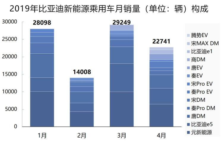 比亞迪受旗下多款車型銷量下挫影響,整個新能源乘用車銷量在4月下挫了22%——比亞迪唐DM銷量降幅20%、亞迪秦Pro DM銳減43%、比亞迪宋DM減少14%、比亞迪e5縮減43%、元新能源減少36%、比亞迪宋Pro EV減少9%、比亞迪商和比亞迪秦EV本月0銷量……這么多大將折損,比亞迪有點傷不起。