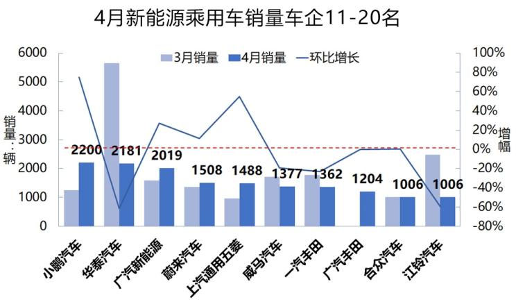 從動力類型看,純電動乘用車4月銷售66476輛,環(huán)比下跌25.45%,同比倒是增長的,但是增幅從上個月的118%急速下挫至21%。