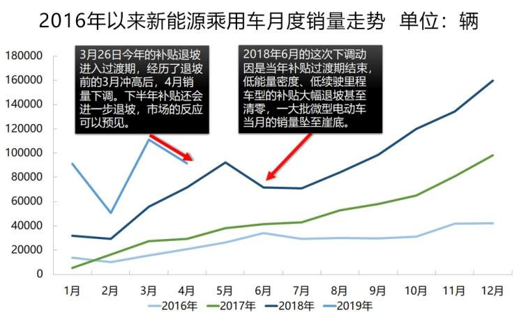 4月國內(nèi)新能源乘用車市場出現(xiàn)了歷史上鮮見的銷量環(huán)比下滑,從10萬輛的月銷量山頭跌下,9.2萬輛的銷量較3月減少17.5%,同比增幅也大幅回落到28.1%。以往數(shù)年,這一市場走勢都是上年末沖高、年初回落,年內(nèi)爬坡增長,直至新的年末沖高。