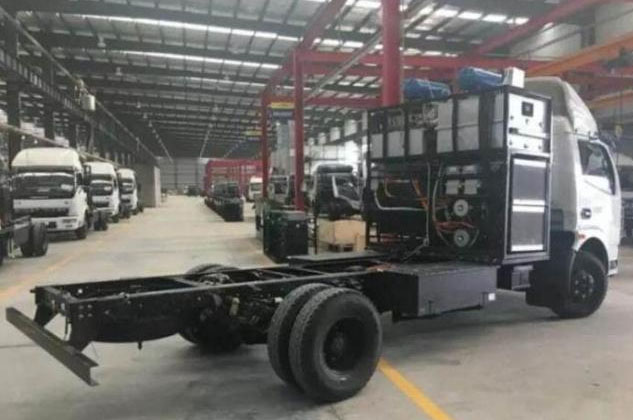龐青年的下屬開始演示這套“全球領(lǐng)先”的技術(shù)——用水管接在自來水龍頭上,對車頂?shù)膬蓚€水箱進(jìn)行加注,注滿后駕駛員發(fā)動車輛,水箱與氫燃料電池間相連的透明軟管內(nèi)的水珠被氣體沖下引擎發(fā)動,車輛被開出車間。