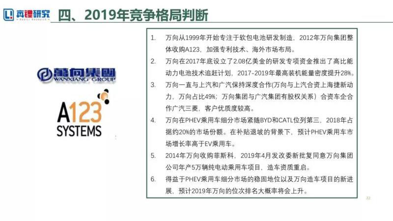 得益于PHEV乘用車細(xì)分市場(chǎng)的穩(wěn)固地位以及萬向造車項(xiàng)目的新進(jìn)展,預(yù)計(jì)2019年萬向的位次排名大概率將會(huì)上升。