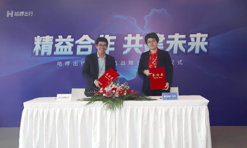 圖為比克電池與哈啰出行簽約儀式