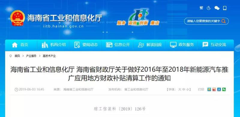 海南省工業(yè)和信息化廳和海南省財(cái)政廳5月29日發(fā)布了《關(guān)于做好2016年至2018年新能源汽車推廣應(yīng)用地方財(cái)政補(bǔ)貼清算工作的通知》。