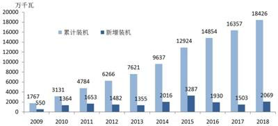 圖2 2009年以來風(fēng)電年度新增裝機和累計裝機