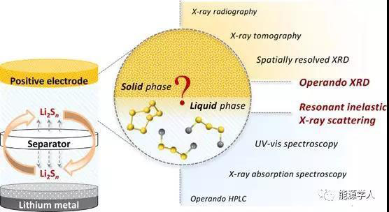 鋰-硫電池在電化學(xué)儲(chǔ)能應(yīng)用中的高能量密度是基于硫的高理論比電荷。但到目前為止,鋰-硫電池的商業(yè)化仍然受到阻礙,因?yàn)榉磻?yīng)機(jī)理的復(fù)雜性涉及一系列動(dòng)態(tài)變化的液固平衡。Operando技術(shù)被廣泛應(yīng)用于研究這些性能限制的相變;然而,它們往往在同時(shí)跟蹤和解決固、液相問題上存在不足。本文,Mulhouse材料科學(xué)研究所J. Conder和C. Villevieille對該領(lǐng)域的研究成果進(jìn)行了總結(jié),并簡要概述了用于鋰-硫電池的不同Operando技術(shù)的最新進(jìn)展(圖1),從而解決了單一技術(shù)是否可用于準(zhǔn)確研究固體和液體平衡的問題。