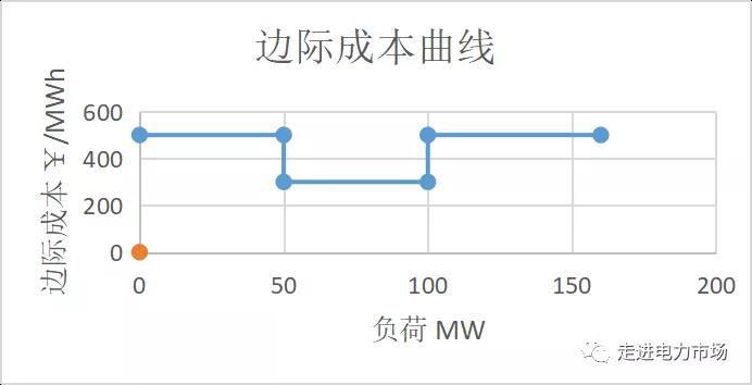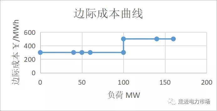 4)如果負(fù)荷在100MW-160MW之間,邊際成本為500¥/MWh。