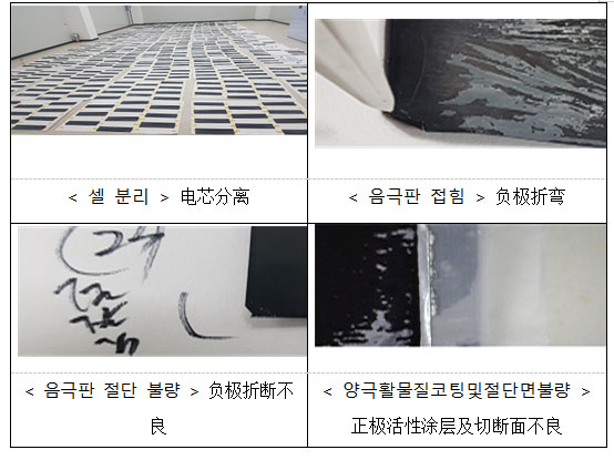 ●解體分析:少部分電池存在極片折疊和切割不良、活性物質(zhì)涂層不良等制造缺陷,但經(jīng)過180次實(shí)驗(yàn)驗(yàn)證未發(fā)現(xiàn)由電芯不良引發(fā)火災(zāi)現(xiàn)象。