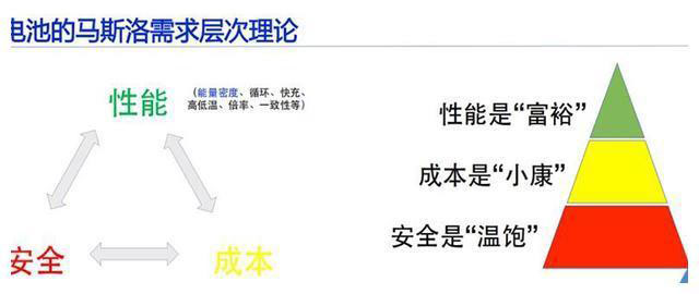 在比克看來,作為新能源汽車產(chǎn)業(yè)的重要驅(qū)動(dòng)力,鋰電行業(yè)掌握著應(yīng)對(duì)以上矛盾的破局之法。陳輝表示:“著名的馬斯洛需求層次理論解釋了人類需求的階梯性發(fā)展,這一理論同樣適用于電池發(fā)展,安全、成本和性能三大需求中,安全是“溫飽”,成本是“小康”,性能是“富裕”,三者缺一不可又相互制約。面對(duì)這一局面,校準(zhǔn)電池發(fā)展的天平,尋求安全、成本、性能三方的平衡將為新能源汽車產(chǎn)業(yè)帶來全新突破?!?